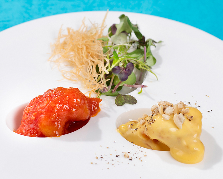 食欲を刺激する辛味や爽やかな酸味を取り入れたメニューで構成した夏のコースをご用意しています。スパイシーさの中にある旬の甘鯛の甘みや旨み、海老と調和するマンゴーの甘酸っぱさなど、ぜひご賞味ください。
