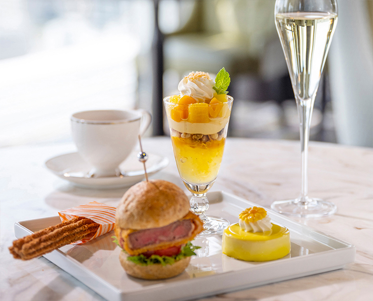 夏の爽やかな季節のおいしさと彩りを表した今回のアフタヌーンティーは、マンゴーやパイナップルをふんだんに使ったパフェやムース、