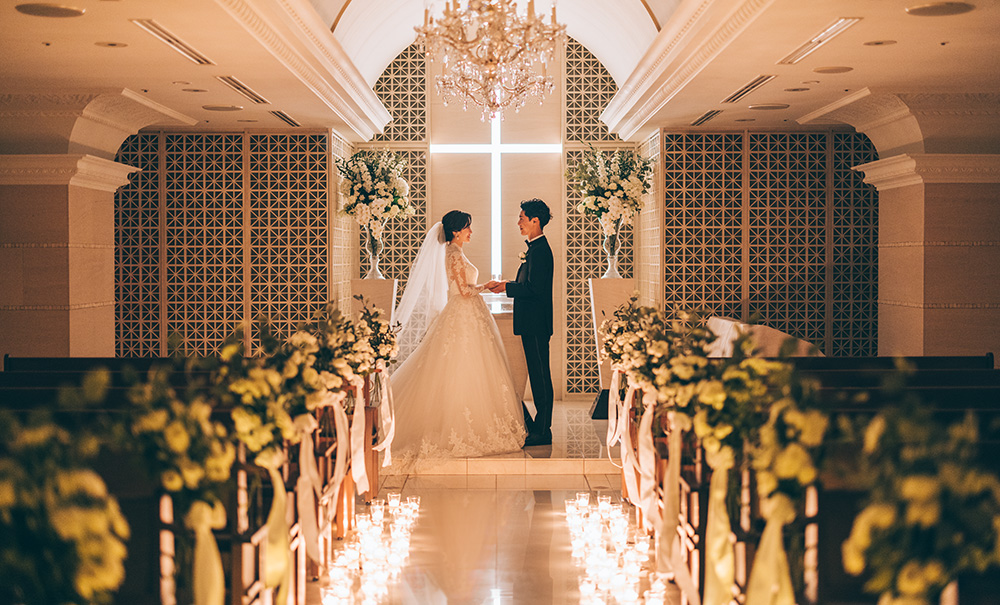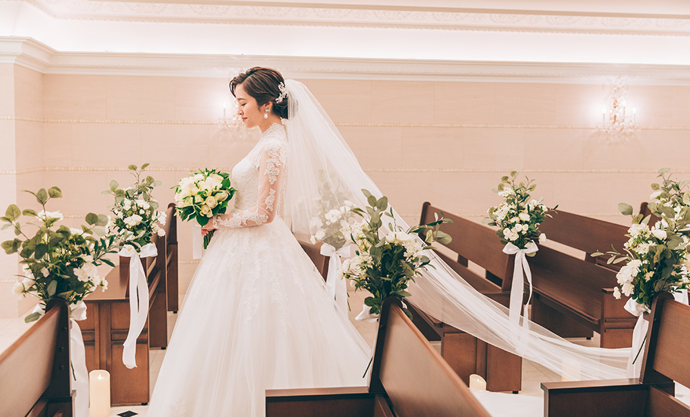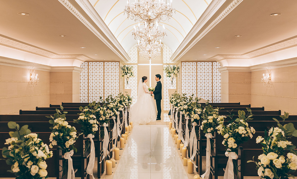 まばゆい光と輝きの中で歩く純白のバージンロード、