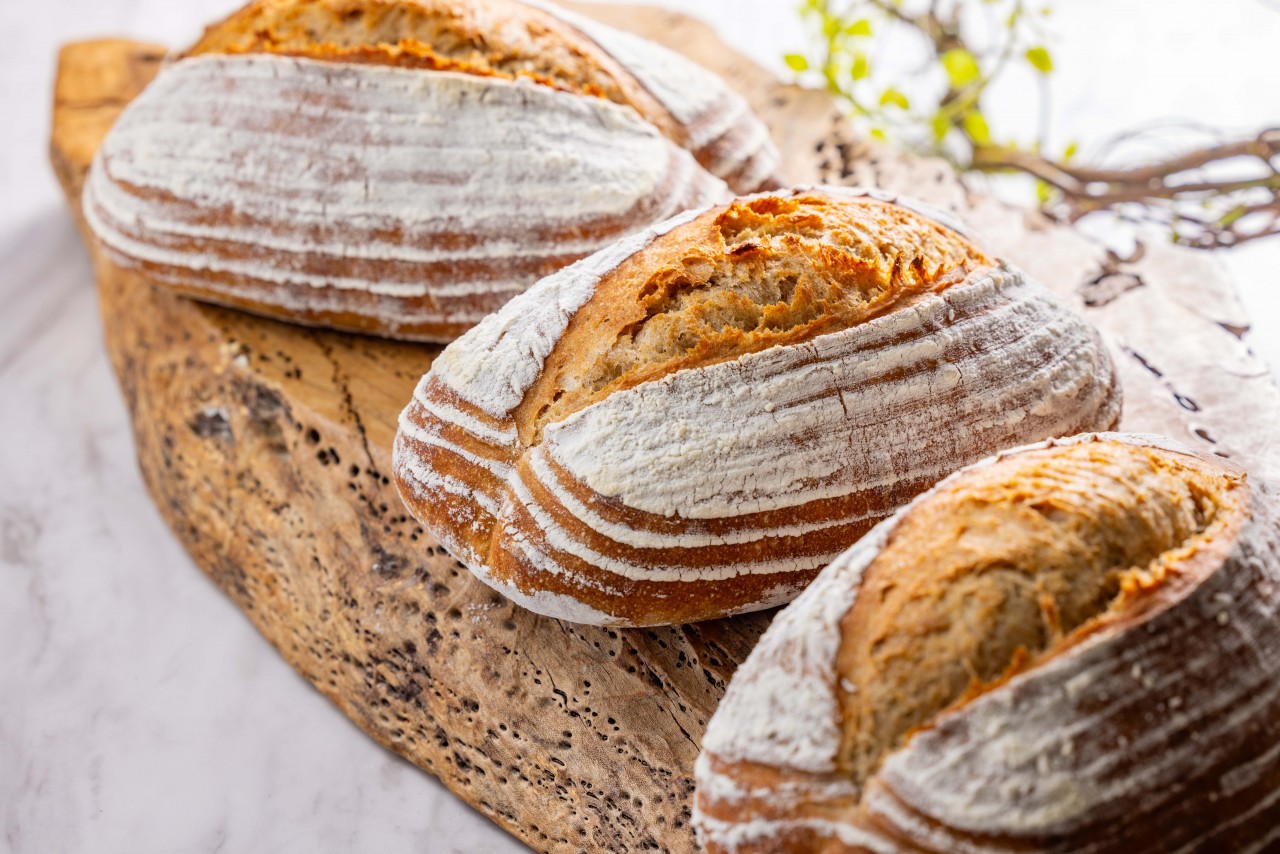 オーガニック栽培のスペルト小麦を使った自家製カンパーニュ (スペルト小麦以外の全粒粉やライ麦も使用しております)