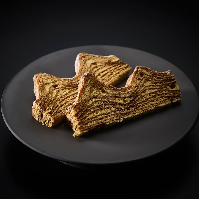 知多郡美浜産濃縮塩水・かんすいを製塩工房の釜で煮詰めた天然塩「美浜の塩」を使用したグルテンフリーバウム。