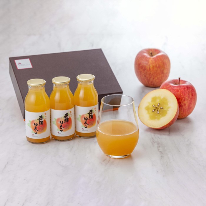 岐阜県飛騨高山「青木果樹園」の完熟蜜入りりんご「ふじ」を贅沢に搾った、100%ストレートジュース。