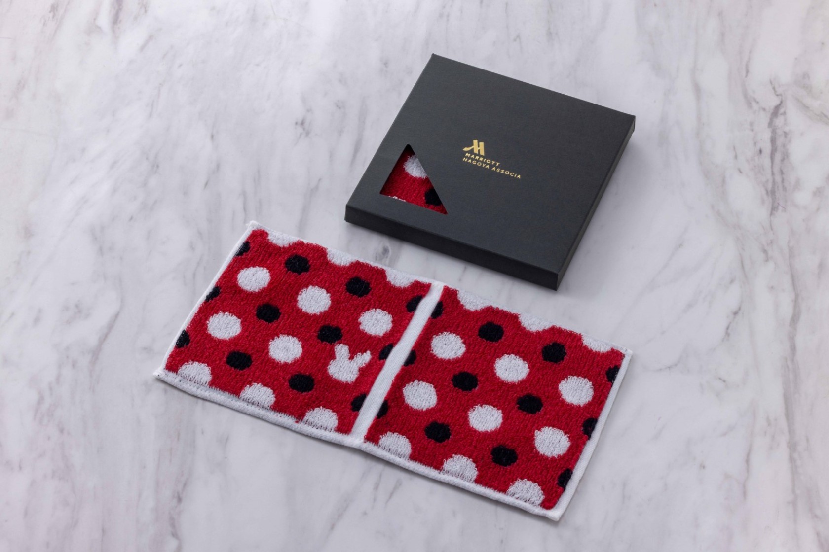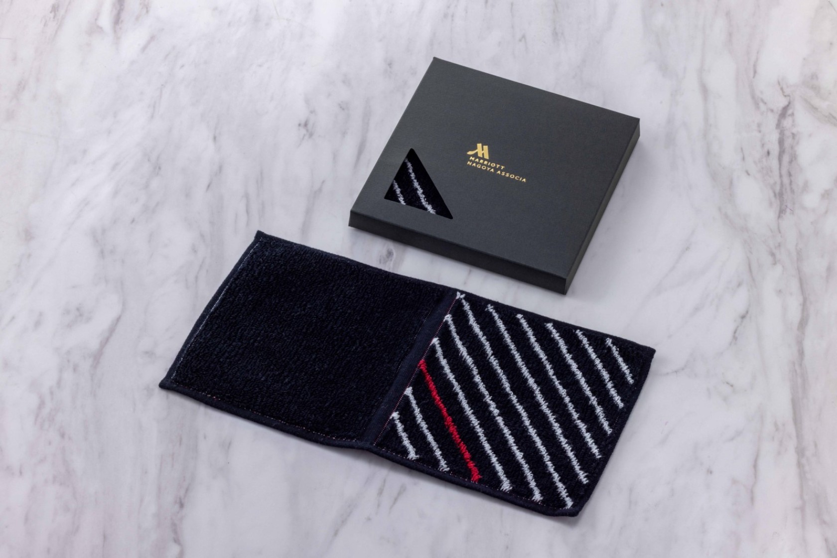 ホテルのブランドカラーをイメージしたオリジナルハンカチ2種。