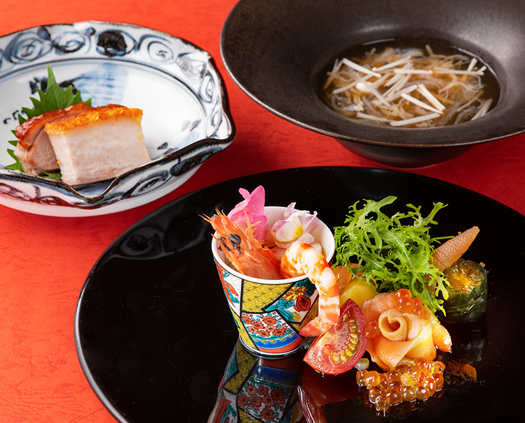 食材の色彩を巧みに生かした前菜、焼味師が焼き上げる自慢の焼き物、梨杏のこだわりがつまったふかひれのスープなど、中国料理の奥深い魅力をさまざまなアプローチでお楽しみいただけるおすすめのディナーコースです。