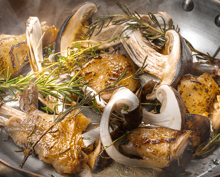 濃厚な旨味を閉じ込めるコンフィに。松茸はシンプルに味と香りを