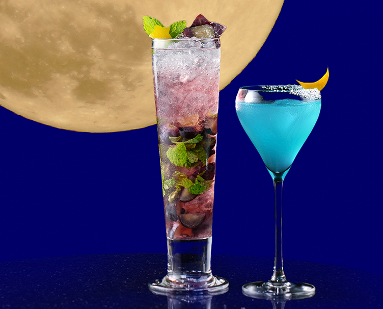 ジャズのスタンダード曲をイメージした美しく爽やかな一杯と、巨峰が華やかに香るノンアルコールモヒート。月の輝きが冴える秋の夜に景色や音楽とともにお楽しみください。