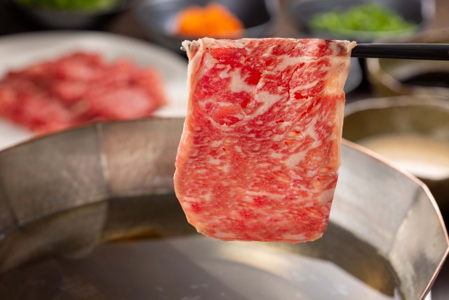シェフこだわりの冷製料理、目の前で仕上げる牛しゃぶしゃぶのカービング、