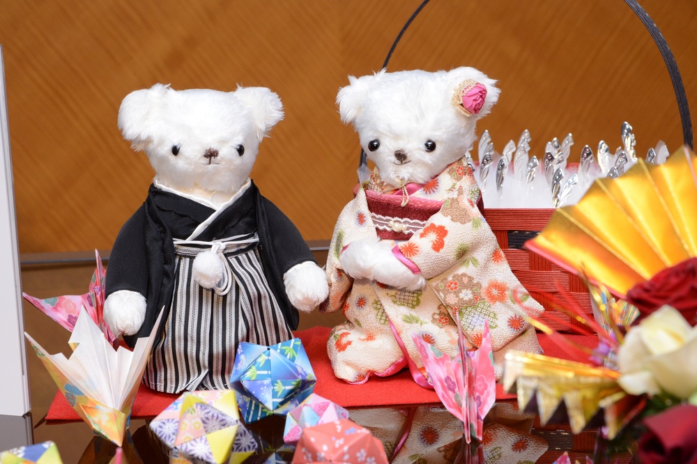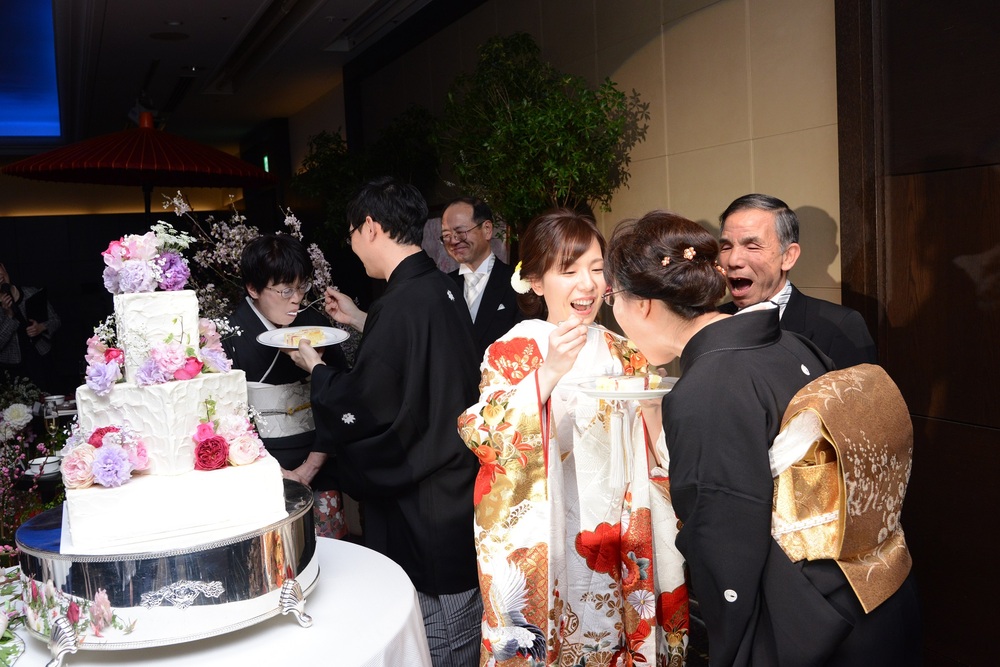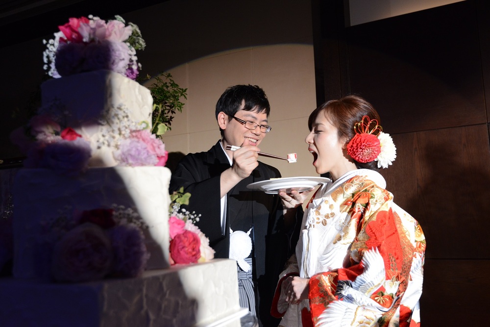 ファーストバイトも「和」にこだわり、スプーンではなくお箸で。よくあるシーンもちょっとアレンジを加え、印象に残る披露宴に。
