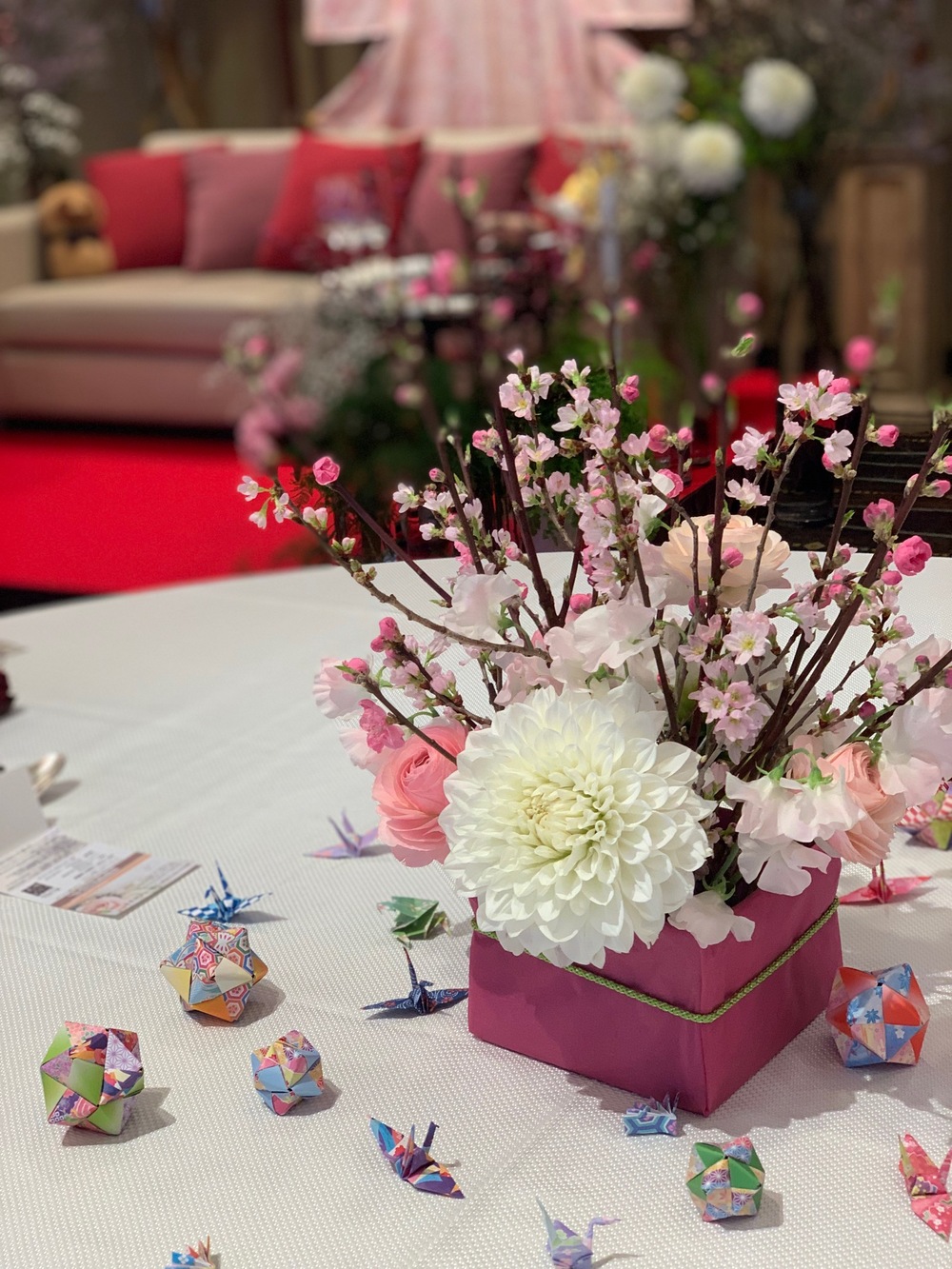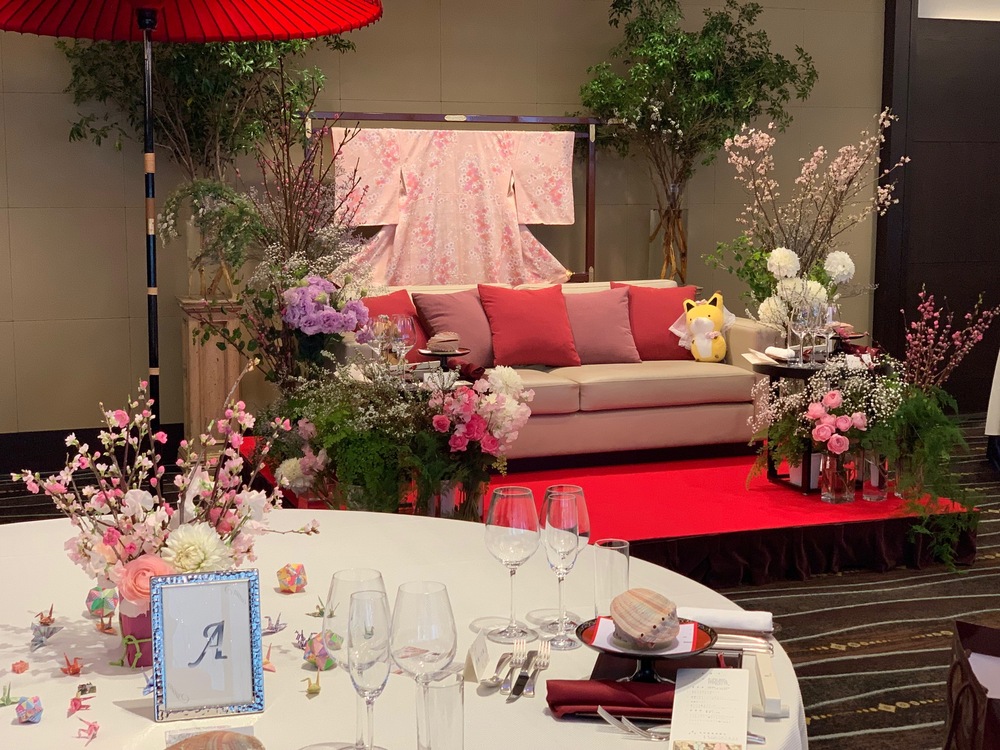 披露宴は、春らしく桜と和をテーマにとても素敵なコーディネートをしていただきました。