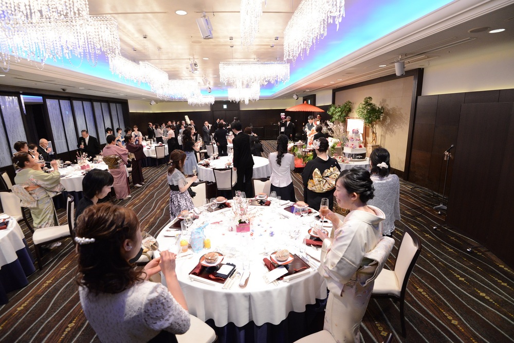ウェルカムスペースから披露宴会場への扉が開いた瞬間、お二人がこだわった「和」の世界が広がり、ゲストの皆さまもあっと驚いた様子でたくさん写真に収めていただきました。