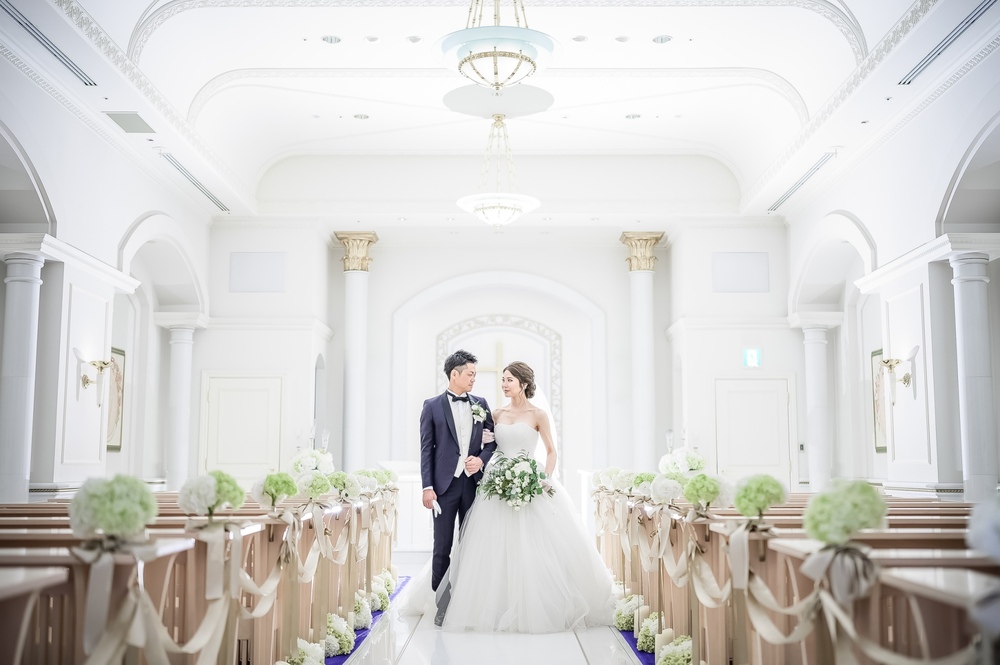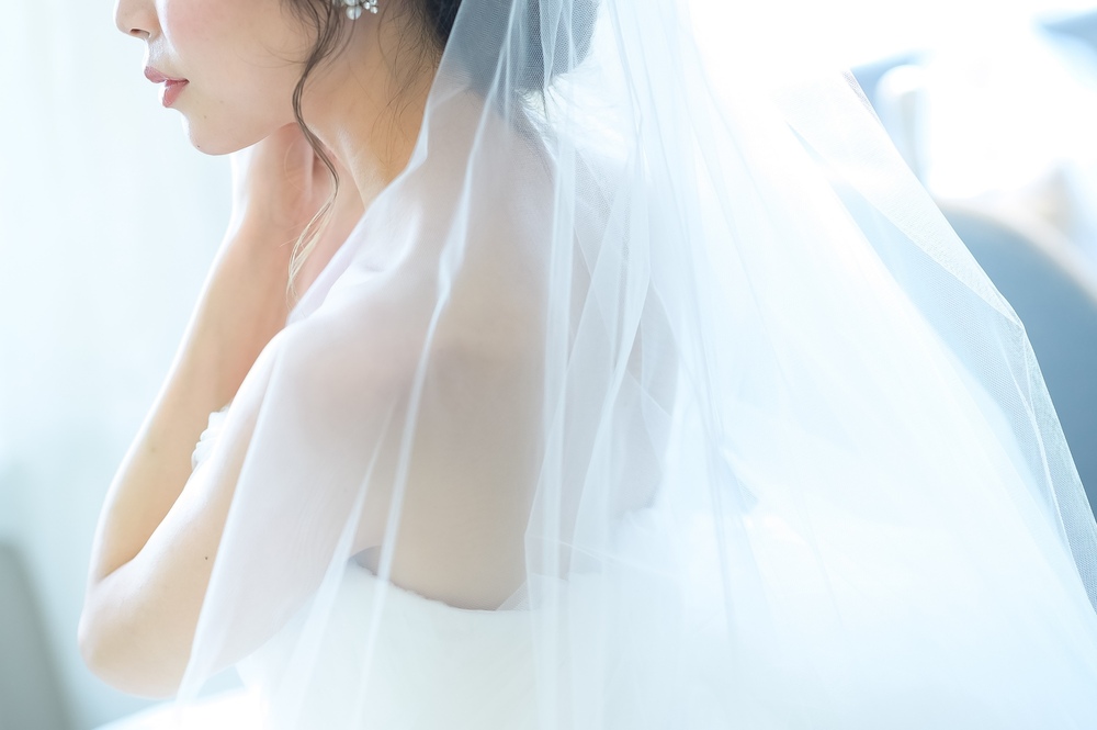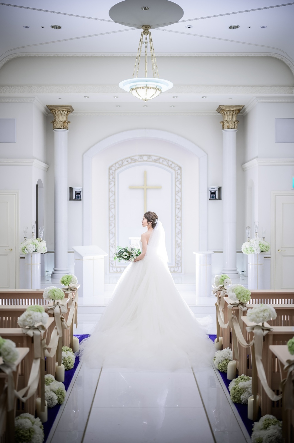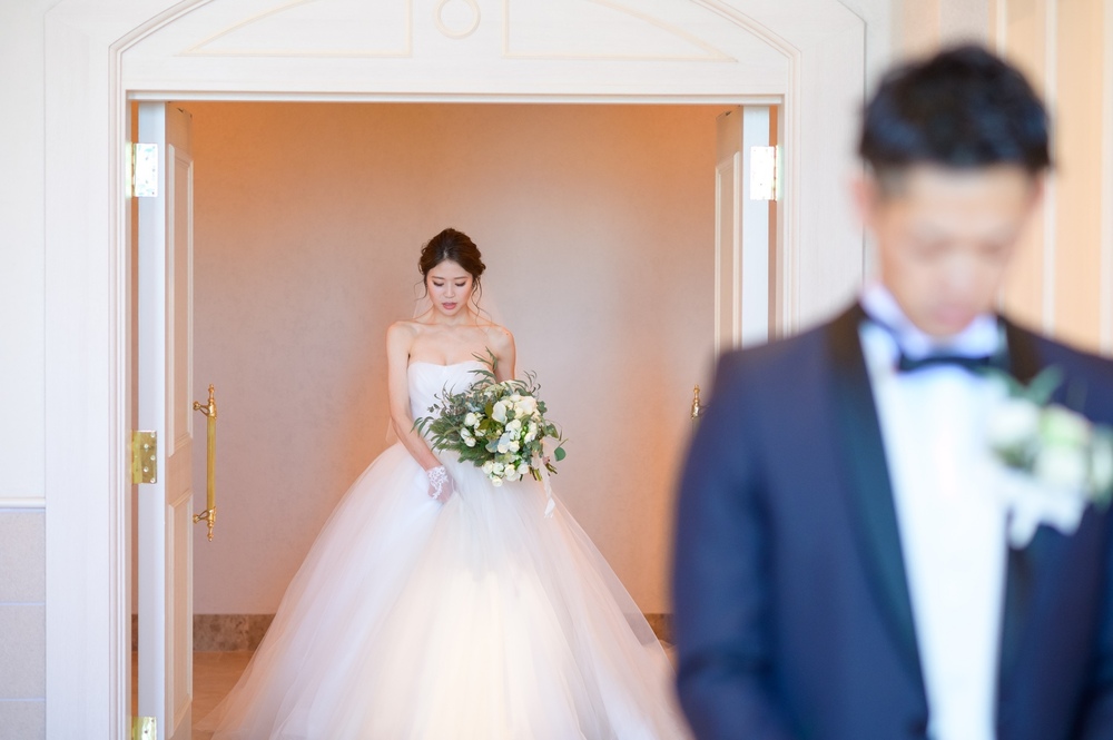 華やかで存在感あるドームラインのウェディングドレスに身を包んだご新婦様。
