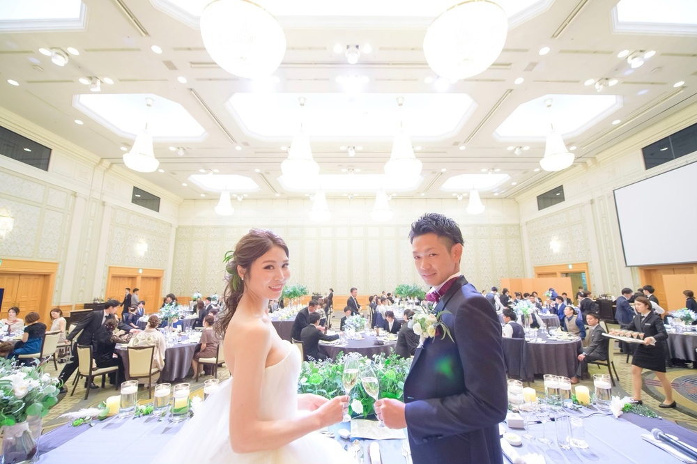 披露宴会場はおふたりの門出にふさわしい、眩しいほどのシャンデリアが輝くタワーズボールルーム。