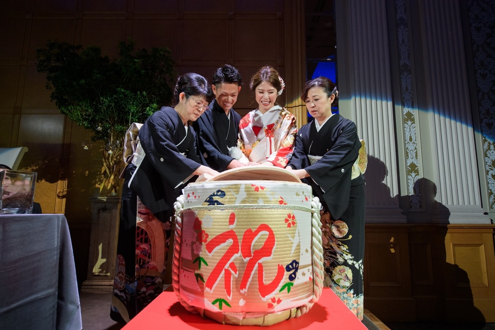 鏡開きの祝い樽の中には、ゲストの皆様へ感謝の気持ちを込めてギフトを用意されました。