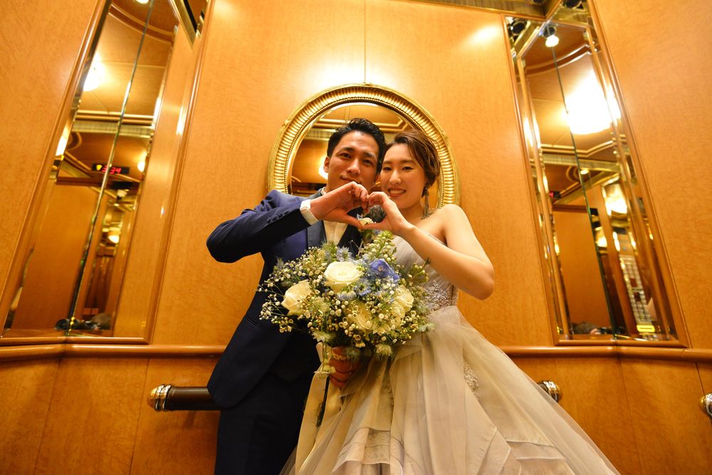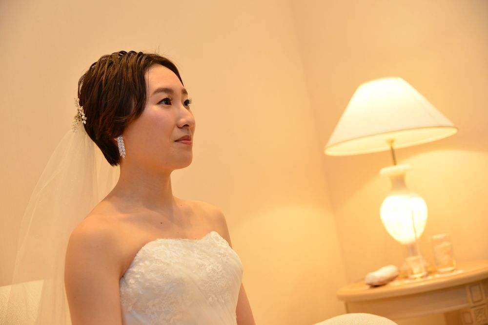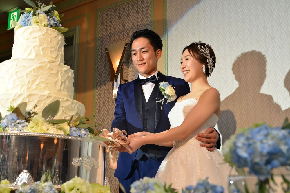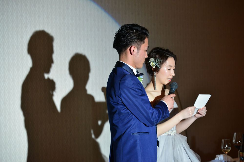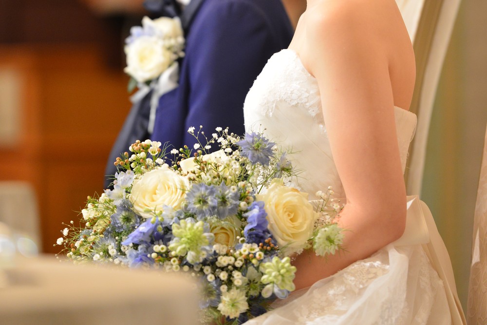 ブルーグレーのカラードレスをオシャレに着こなす新婦様 アクセサリーのセレクトにもセンスが光ります ご披露宴は 地上200mからの眺望をお楽しみいただける「ジュピター」にて こだわりのお花のコーディネートは 大人かわいい 爽やかなお色味 優しい自然光がたっぷりと入るお部屋で ゲストの方々とたくさん言葉を交わされ おふたりの明るいお人柄が表れた あたたかな雰囲気のご披露宴となりました