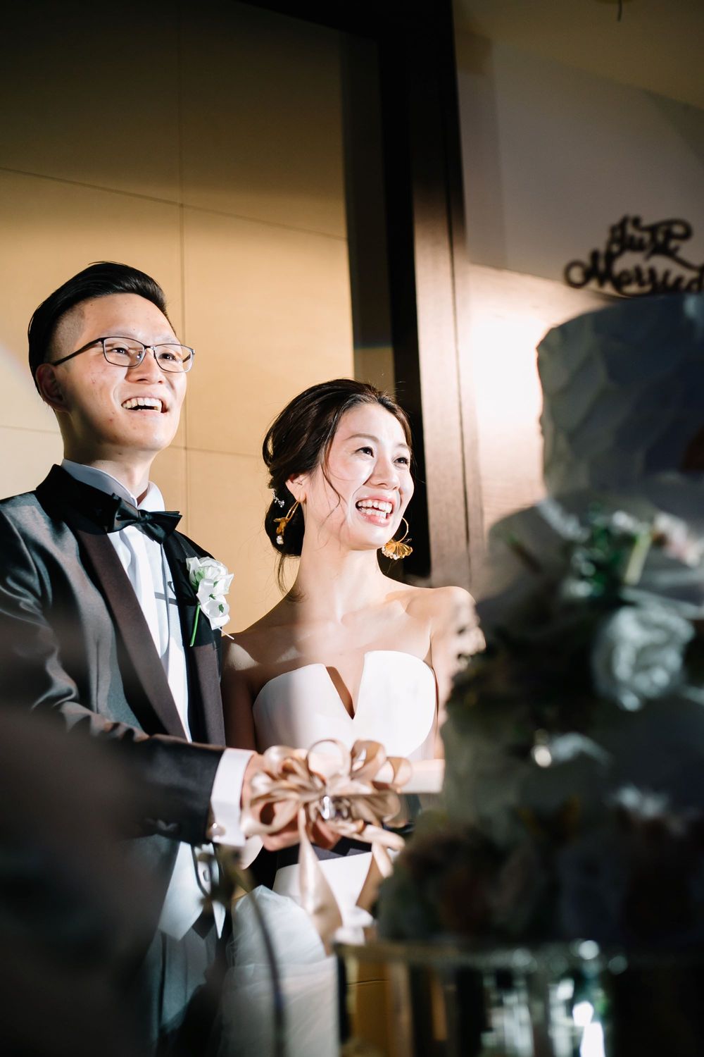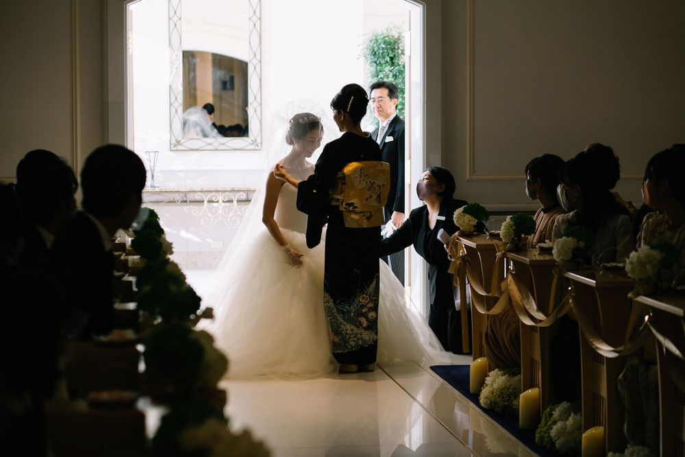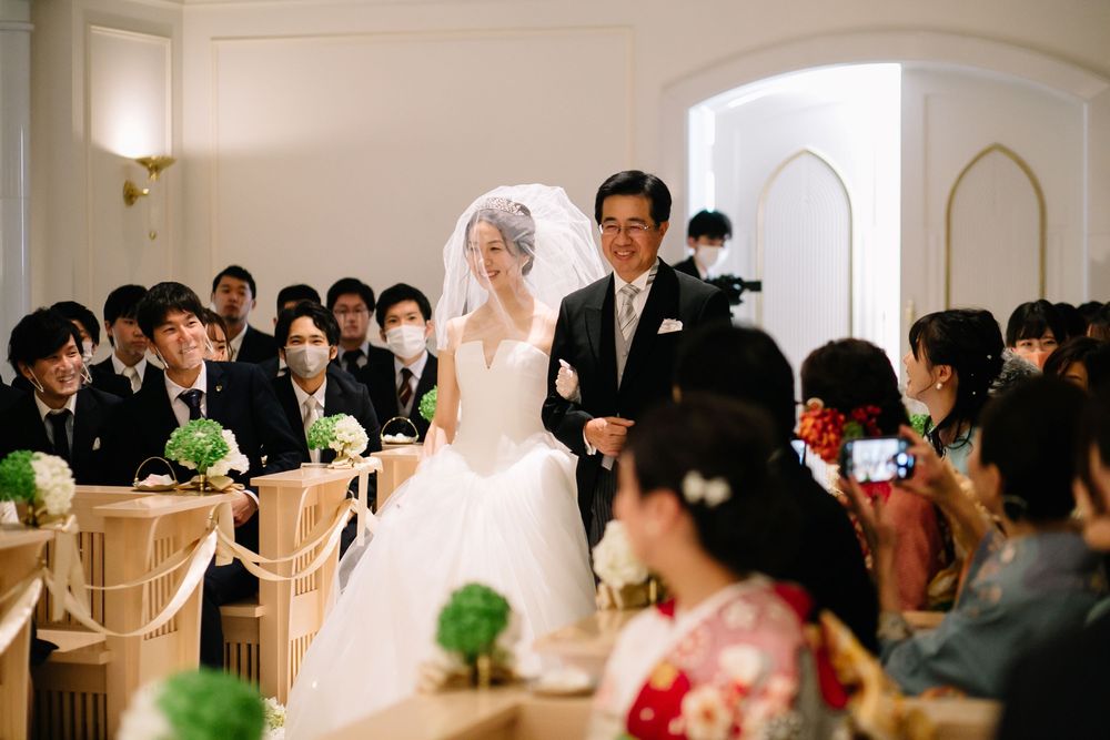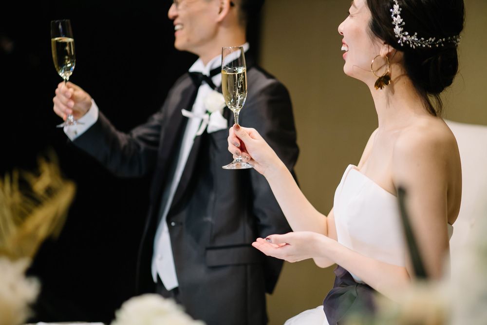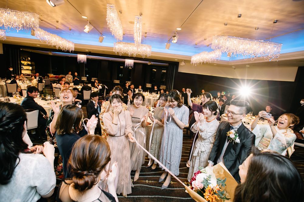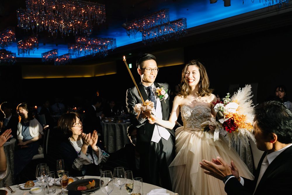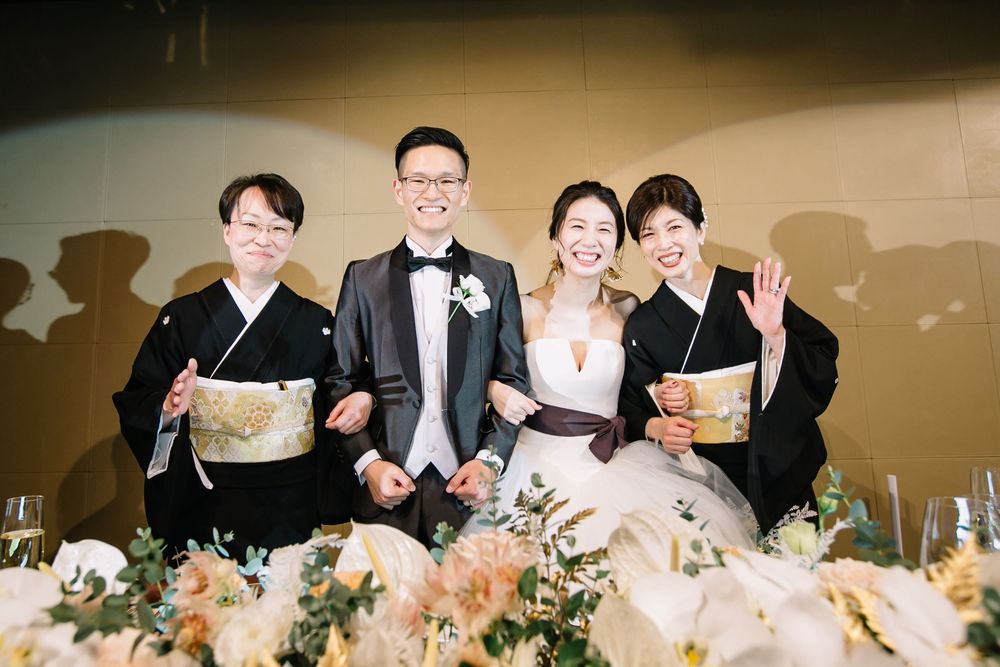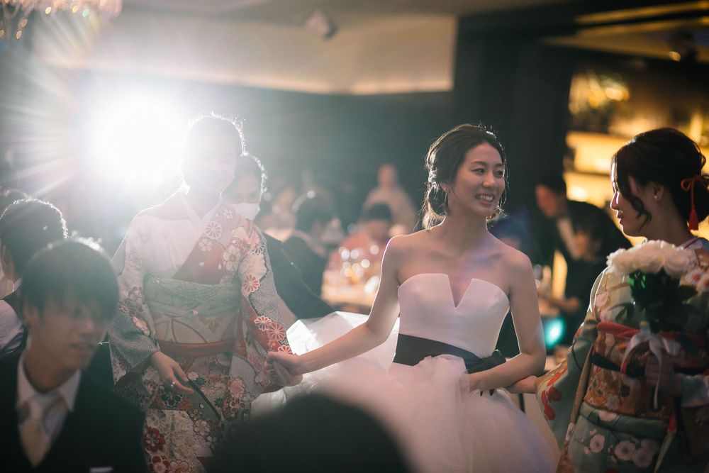 こだわりのオーダードレスを華麗に着こなすご新婦様 お花のコーディネートや小物にもセンスが光ります おふたりともに自然体な笑顔がとても素敵で ゲストの方々もスタッフも笑顔あふれるご披露宴となりました プレゼントとしておふたりがご用意されたのは 生演奏の ”ジプシーヴァイオリン” 大切なゲストの皆様を 迫力ある音色でおもてなしされました