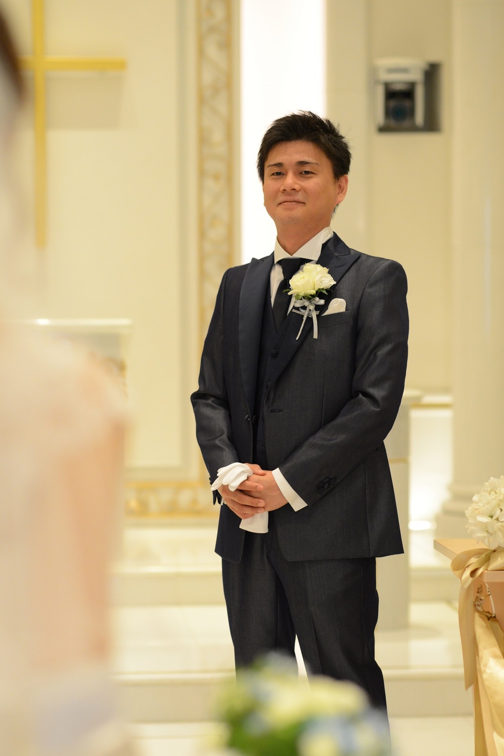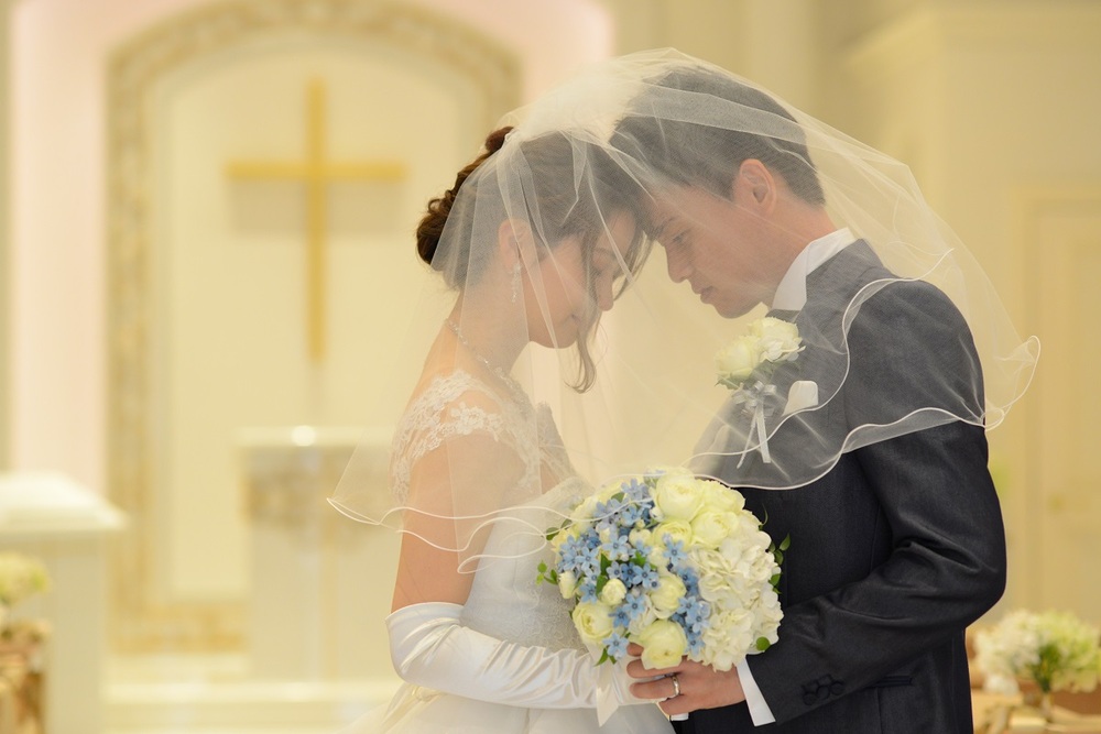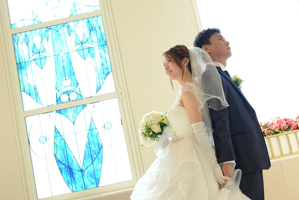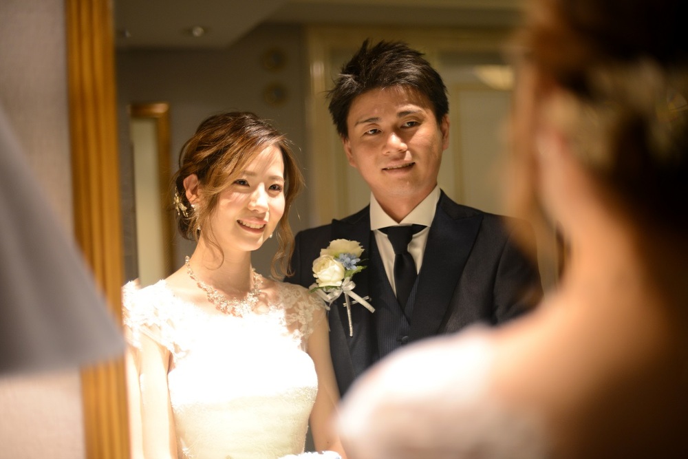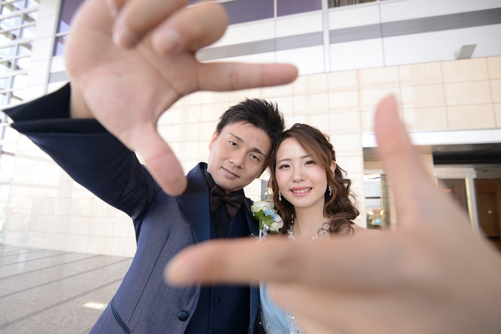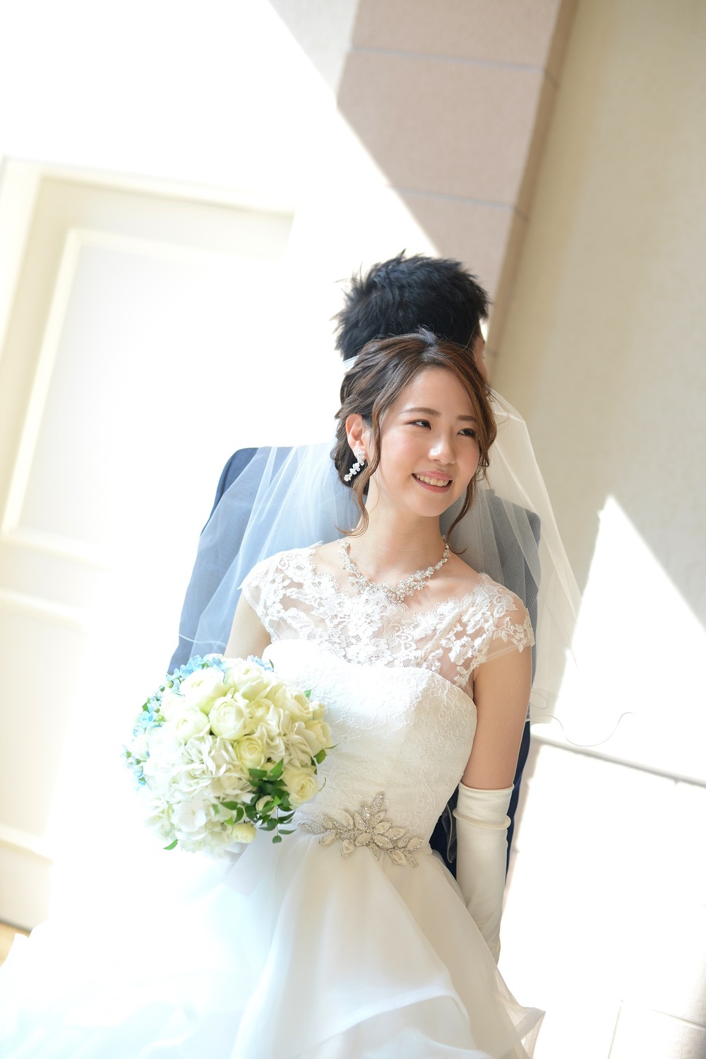 前撮りをされたおふたりのお写真をご紹介 胸元にレースをあしらった上品なウェディングドレスと お色直しではビジューやチュールがポイントの可愛らしい水色のドレスをセレクト マリオット館内の至る所で華やぐ おふたりの笑顔が印象的でした