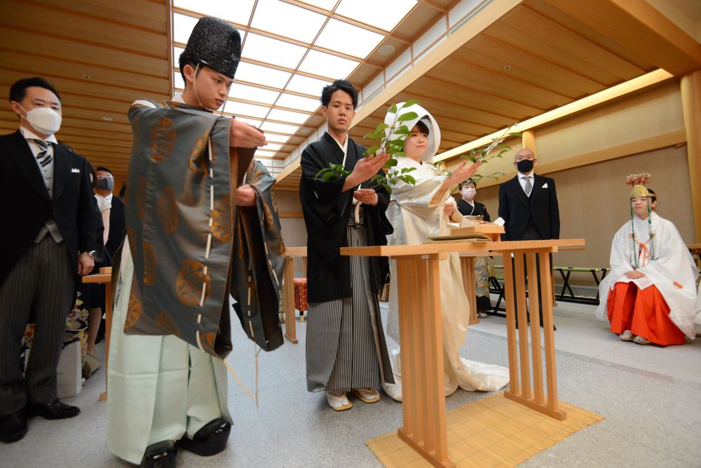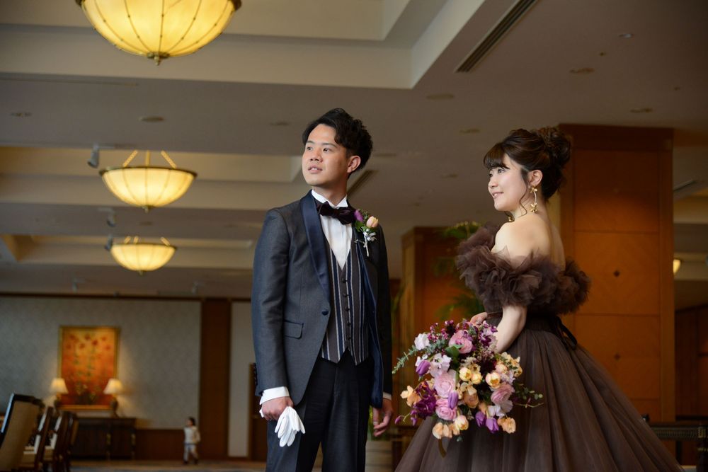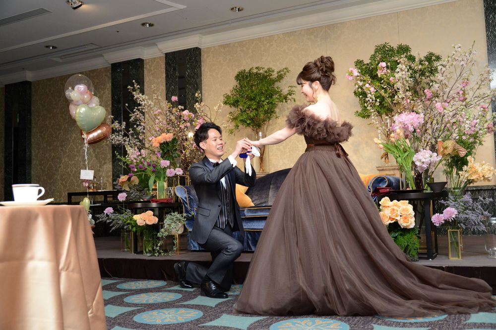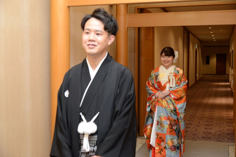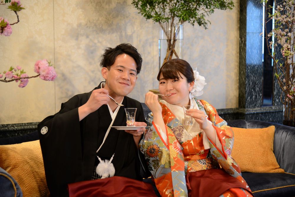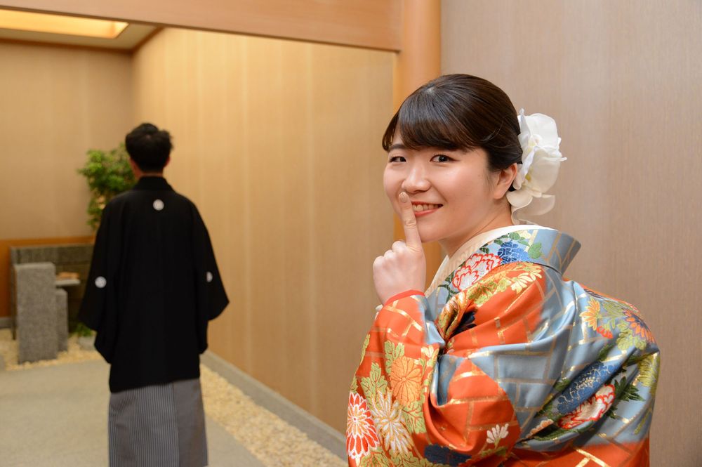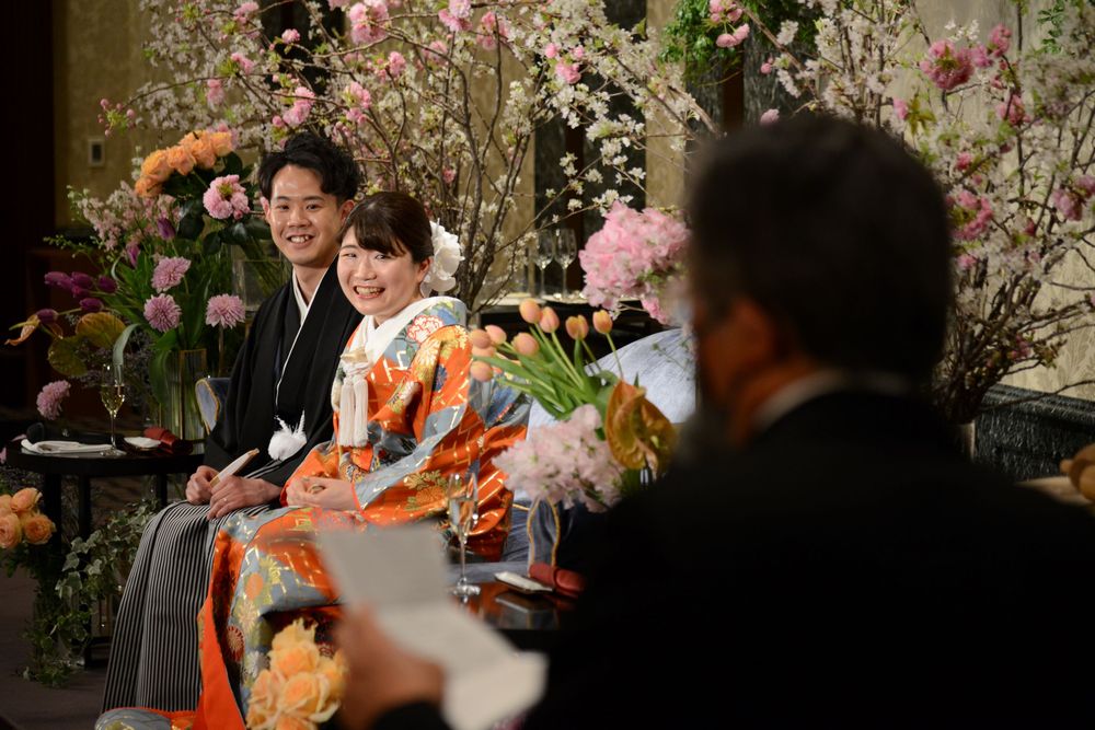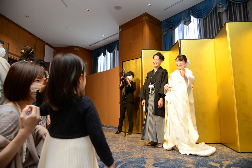 【自分たちらしさのあるオリジナルウェディング】 ご遠方にお住まいのゲストを想い 名古屋マリオットアソシアホテルをお選びいただきました 挙式衣裳の白無垢でゲストをお出迎え 羽織替えをして披露宴は色打掛でご入場 「HATSUKO ENDO」が良くお似合いのお二人 ソファの高砂にすることでアットホームな雰囲気に こだわりの衣裳姿を余すことなくご披露いただけました ゲストが参加できるお楽しみ会や 鏡開きにはお互いの地元名物のお菓子を包んで… 笑顔と感動の溢れる結婚式でございました