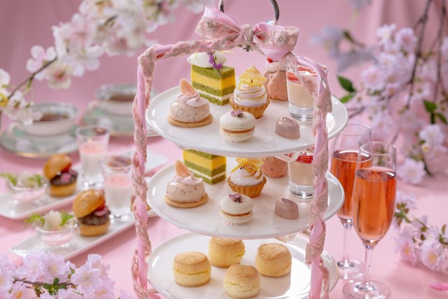 桜香る、パティシエ渾身のスイーツコレクション桜葉と静岡県産抹茶の紅ほっぺショートケーキや春らしい色合いの静岡県産紅ほっぺと桜のゼリー、桜風味のホワイトチョコムース、苺と桜あんのタルトレットなど