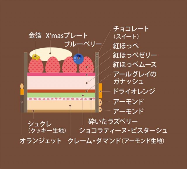 香ばしいアーモンドタルトに、アールグレイのガナッシュ、ピスタチオ、さらには紅ほっぺのムースが重なり合い、気品あふれる味わいに。