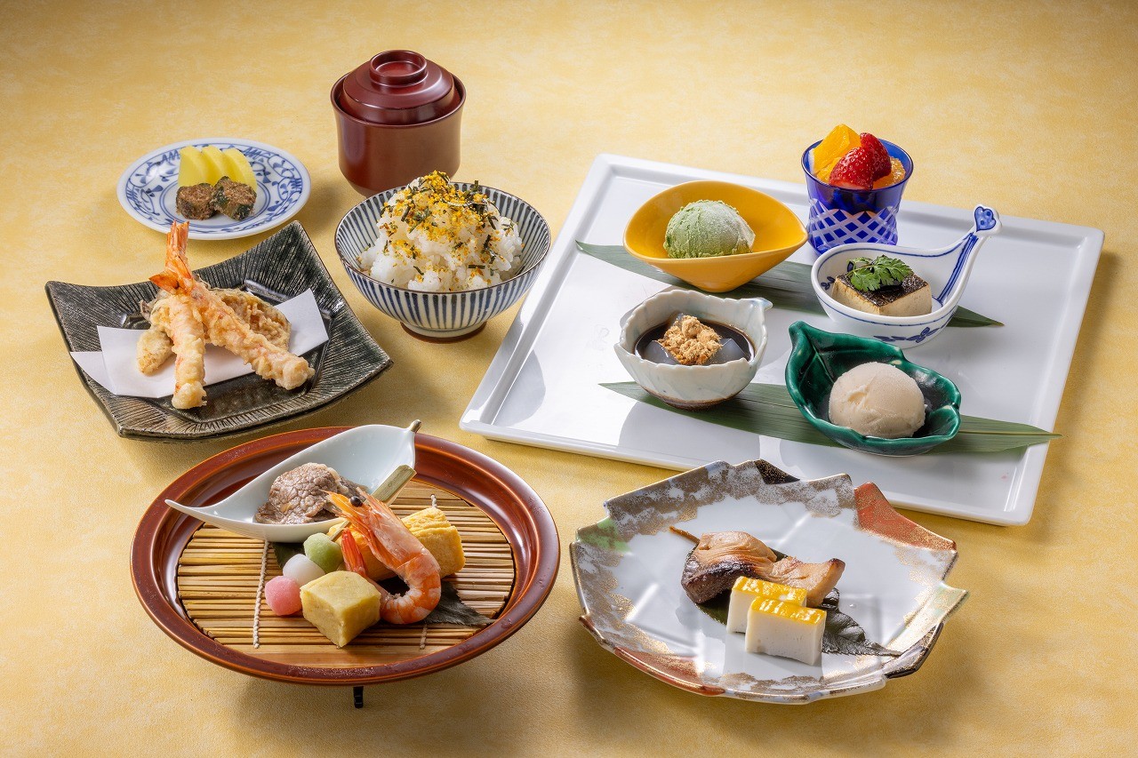 先付盛り合せ/焼物/揚物(天麩羅)/季節の御飯/赤出汁/香物/甘味