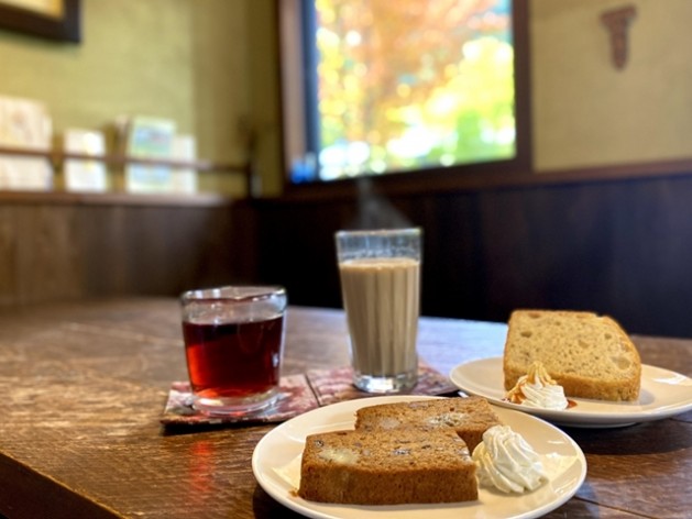 ティータイムのおすすめは、奥飛騨山椒入り自家製ケーキ。