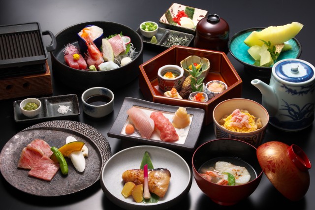 高山の中心部を流れる清流 宮川をイメージした店内で、贅沢な和のひとときをお楽しみください。