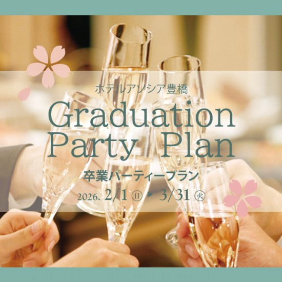 お世話になった恩師やご友人とともに過ごす限定プラン。 遠方からのご来館もしやすい豊橋駅直結。 新しい旅立ちをホテルアソシア豊橋で華やかに。 【内容】 お料理(西洋料理 ブッフェ)+ソフトドリンク飲み放題 お一人様6,500円 【オプション】 ◆アルコール飲み放題 お一人様プラス2,000円 《アイテム》ビール、ウィスキー、焼酎(芋・麦)、ワイン(赤・白)、果実酒、カクテル ◆デザートブッフェ お一人様プラス1,600円~ 【プラン利用特典】 プロジェクター&スクリーン(2m×2m)を5,500円(通常22,000円)にてご用意。 ご利用金額に応じて駐車場利用料金ご優待 ※当プランは20名様より承ります。