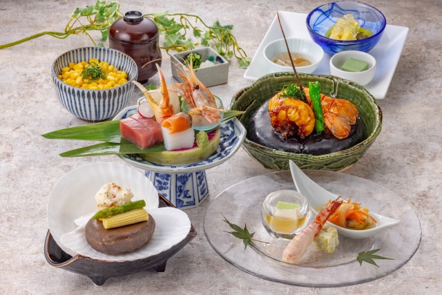 季節会席「琴」 ¥13,000【前菜】車海老みぞれいくら 寄せ茄子